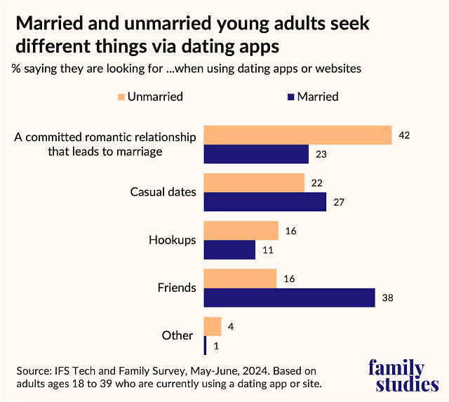- Casual dates are the second most sought-after reason for both married adults and unmarried young adults on the dating apps. Post This