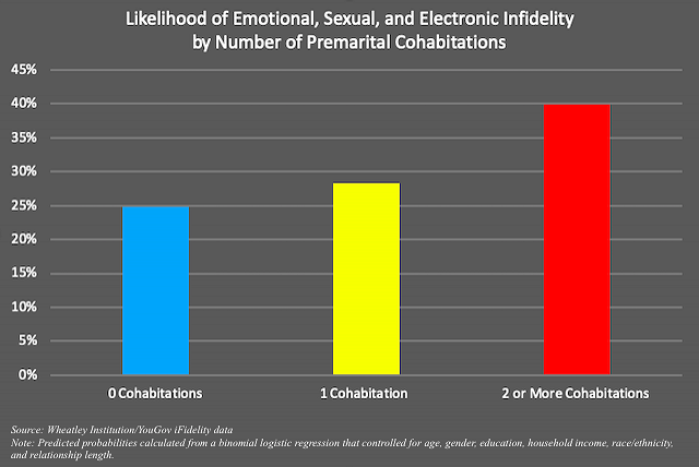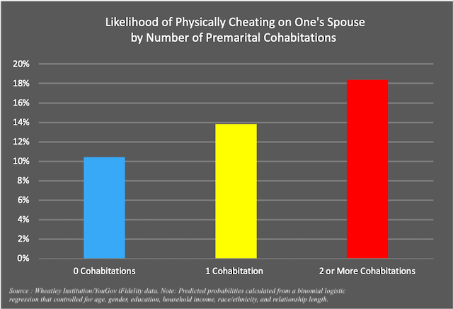 - Those who had cohabited two or more times in their life before marriage were 15 percentage points more likely to have been unfaithful to their spouse than those who did not cohabit. Post This