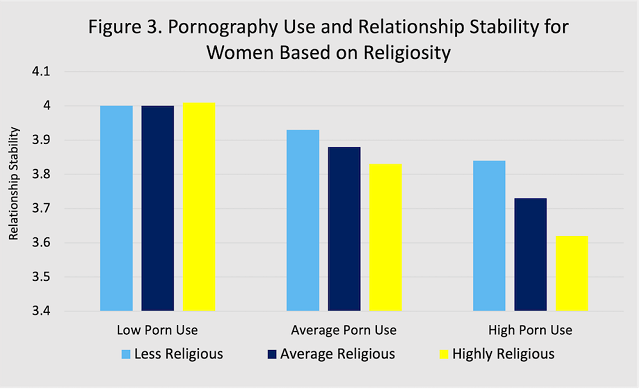 - Religiosity, in particular, changed the nature of the relationship between pornography use and relationship stability, while some of the effects appeared to also be stronger for men. Post This
