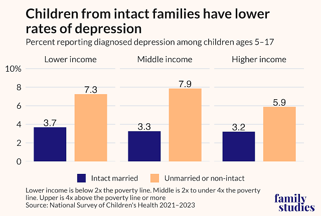 - Children from married intact families enjoy better mental health, graduate from college at higher rates, and earn more money. This pattern applies even to kids with every apparent material advantage. Post This