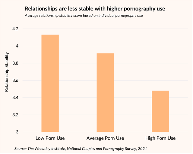 - Higher pornography use is strongly related to lower reported relationship stability, decreasing by almost 15% across three groups. Post This