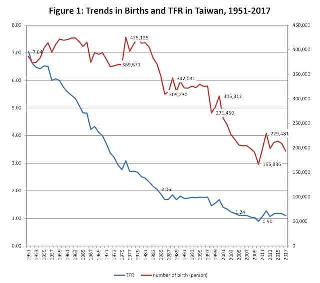 3. The TFR for 2017 is not yet reported by the government, and 1.0 was calculated by the author.