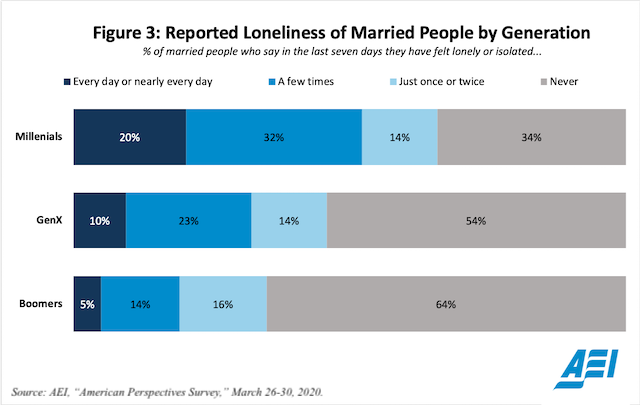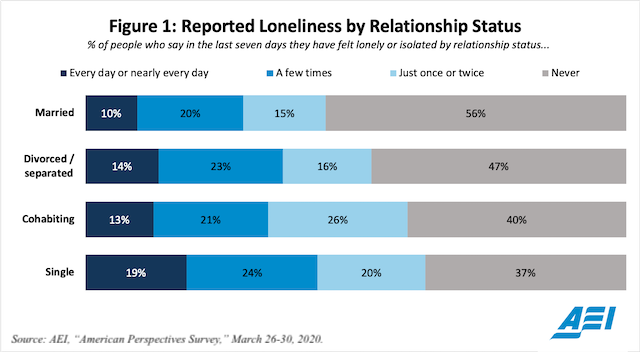 - Our analysis of a new AEI survey indicates that marriage acts as a buffer against loneliness for Americans stuck at home, shielding many men and women from feelings of isolation. Post This
