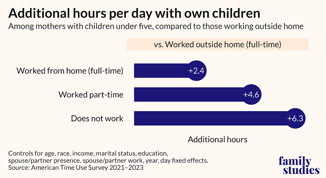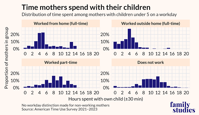 Specifically, we found that moms who work from home spend significantly more time with their young children compared to moms who work in-person.