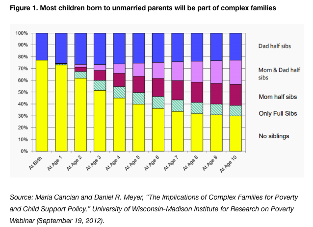 Over the decade, 10-year-old children of unmarried parents lived in increasingly complex family structure, as both the biological father and mother had more children in and outside of their relationship.