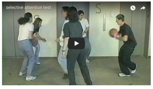 If you have 40 seconds, please indulge me for a brief brain experiment. Watch the first half minute of the video below of college students playing in a circle. Your task? Count how many times the students wearing white shirts pass the basketball.