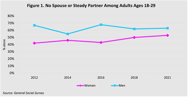 - New data from Pew suggest that among young adults, one-third of women and an astonishing 63% of men are single. Is that correct? Post This