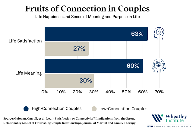 - Spouses in high-connection marriages score twice as high as spouses in low-connection marriages on life satisfaction and life meaning. Post This