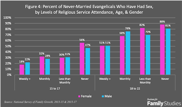- By the time they are young adults, roughly two-thirds of Evangelicals have engaged in sexual intercourse, and about three-quarters have engaged in at least one of three forms of sexual activity. Post This