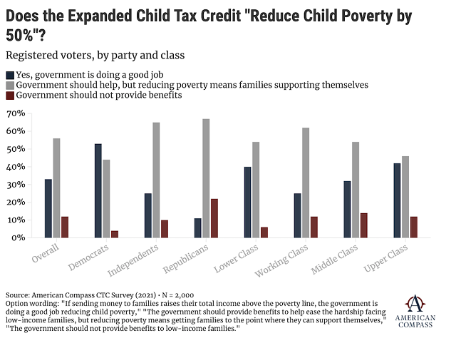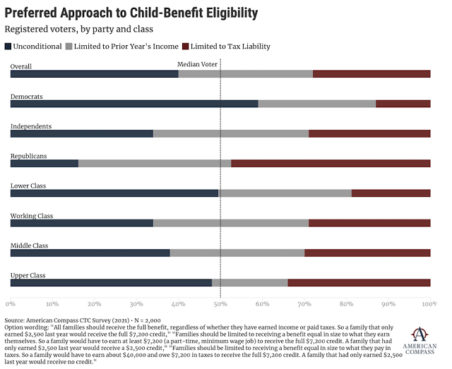 Contra the economists, consider what the American people say about severing all connection between benefits and work. At American Compass, we conducted an in-depth survey that explained how the unconditional CTC actually functions and then asked registered voters what they thought of it.