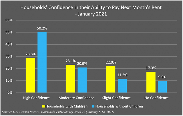 Moreover, about 40% of renter households with children had only slight confidence or no confidence at all that they would be able to pay the rent in full next month, while households without children face far less risk.