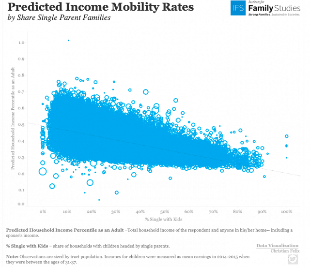 - Mobility for children who were raised in lower-income families is higher for kids raised in neighborhoods with lots of two-parent families, and lower for kids raised in neighborhoods with more single-parent families. Post This