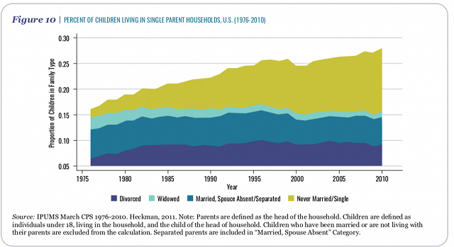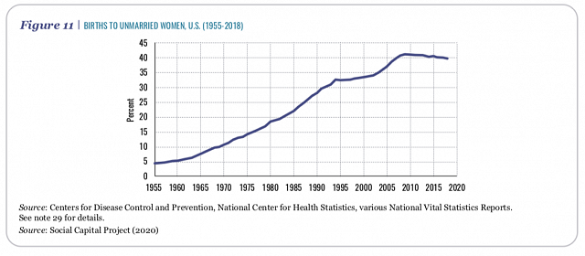 The number of births to unmarried women across all ethnic groups increased from 5% in 1940 to 40% in 2016. Such trends mean that less time and financial resources are devoted to the early development and learning of these children.