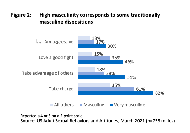 If masculinity is a problem, then it would seem we are in big trouble given how many men gladly consider themselves masculine. But can we show that it is really a problem? To find out, we analyzed men in three groups—very masculine, masculine, and all others—to help us better understand what masculinity is all about.