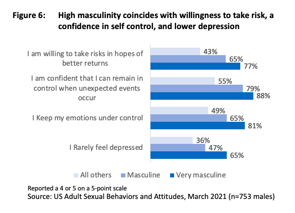 But masculinity doesn’t stop there. In fact, when we look at these findings in the full light of data, it’s clear that instead of shaming masculinity out of modern manhood, it might be better to support and strongly encourage men’s daily experiences of their masculinity—both feeling masculine and being happy about it—because masculinity lies at the heart of productive, contributive manhood.
