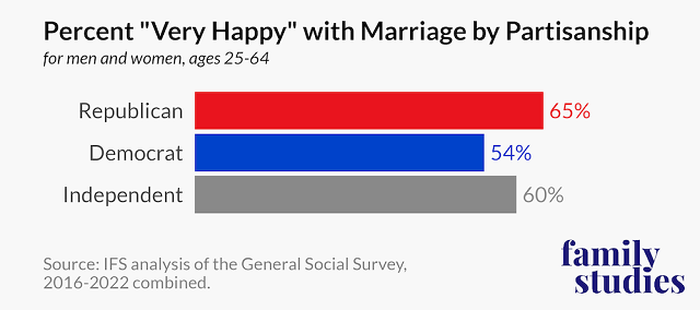 - Republicans continue to enjoy significantly happier marriages and somewhat more stable families than Democrats, per a new IFS research brief. Post This