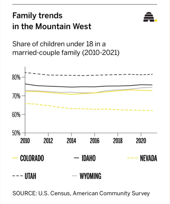 In fact, marriage and fertility rates are falling across the state — save in one exceptional county — in ways that suggest Utah’s distinctive family culture is in danger of looking more like its peers in the Mountain West.