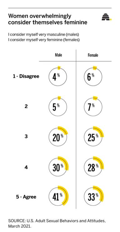 But that message doesn’t seem to be getting across to ordinary women across America, the majority of whom see themselves as “very feminine.” That’s according to data collected recently in the U.S. Adult Sexual Behaviors and Attitudes survey, conducted by one of us. The nationally representative study of adults ranging in age from 18 to 74 has a margin of error of plus or minus 3%.