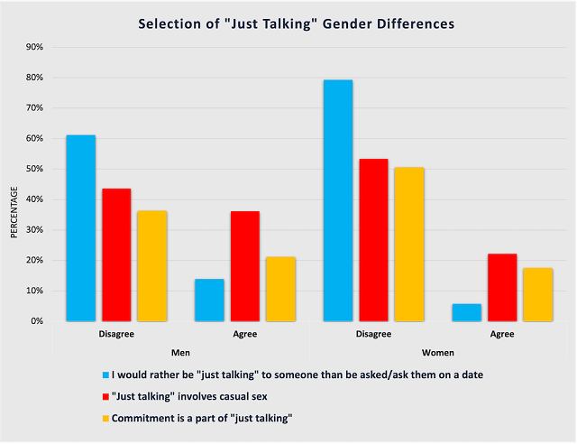 - There are some differences in the beliefs men and women have about this pre-dating behavior known as "just talking." Post This