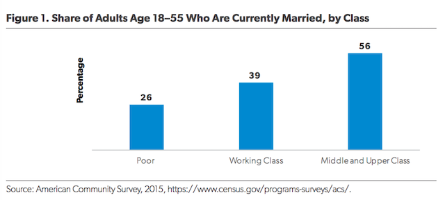 - Today, only minorities of poor adults (26 percent) and working-class adults (39 percent) ages 18 to 55 are married; by contrast, a majority (56 percent) of middle- and upper-class Americans age 18 to 55 are married. Post This