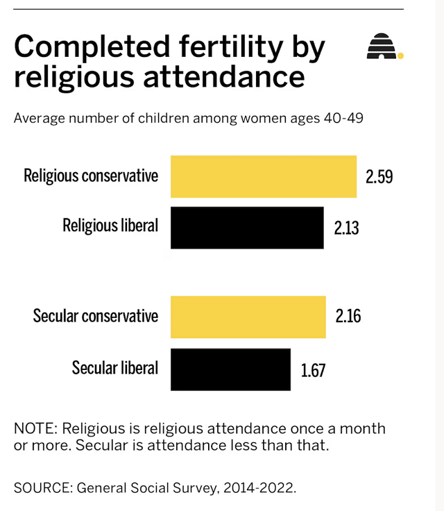 - "The best predictor of whether or not you are above replacement birth rates, if you’re an American, is how religious you are and how conservative you are,” said Louise Perry. Post This