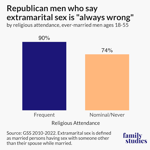 - We find that religious Republican men are much more likely to always disapprove of extramarital sex. Post This