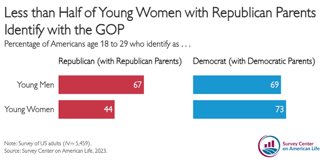 - Young women raised in Republican households are far less likely than young men to identify as Republican as adults. Post This