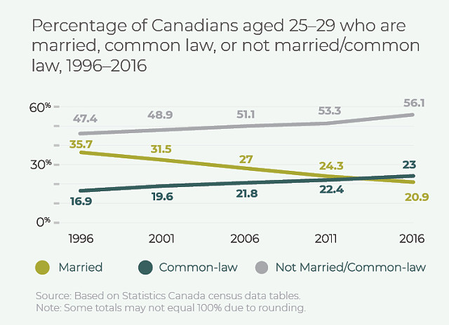 It’s no secret that marriage has been on the decline in Canada for decades. Young adults are increasingly cohabiting or living unpartnered, and they view marriage as nice but unnecessary for a fulfilling family life. So why do many Canadian young adults still choose to marry? Conversely, why are some resolutely against getting married? In a new Cardus report, we examined Statistics Canada’s 2017 General Social Survey to answer these questions.
