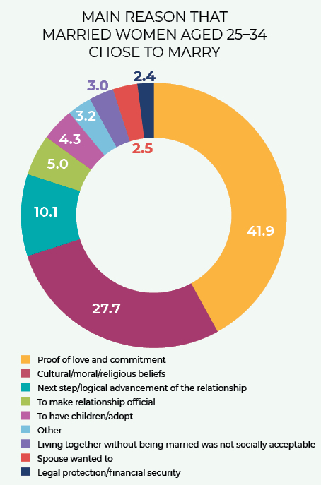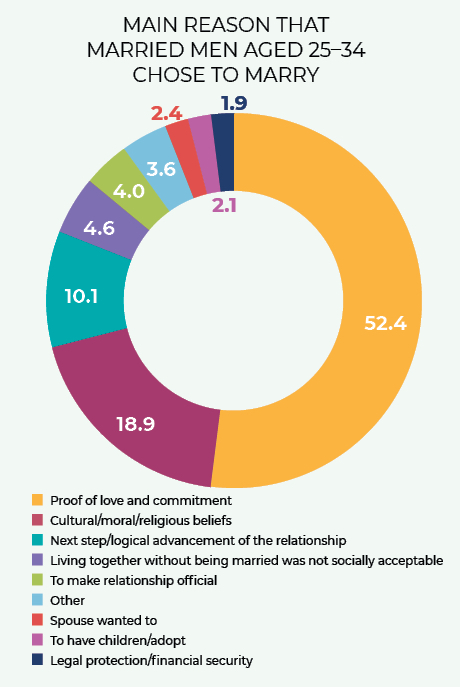 - Among the married young adults and those intending to marry in the survey, the most frequently selected reason to marry was “proof of love and commitment.” Post This